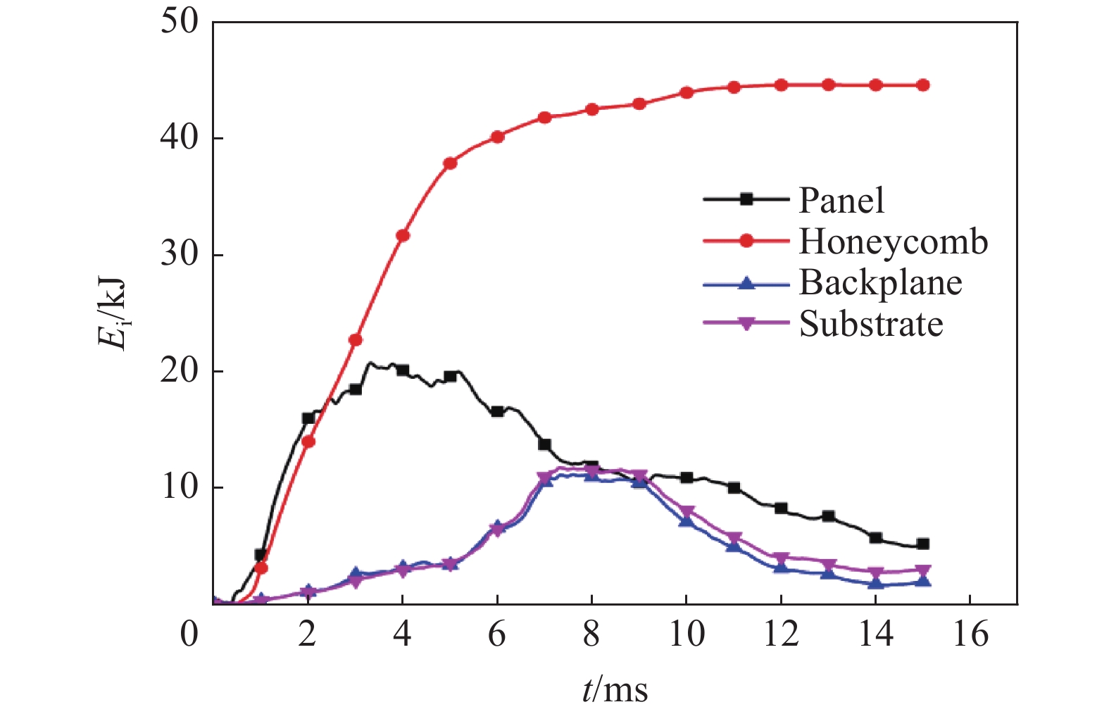 结构 最大挠度d/mm 最大加速度a/g 最大动能$ {E}_{\rm k} $/kJ 最大内能$ {E}_{\rm i} $/kJ 面板 132.82 1018.15 123.28 69.39 背板 89.38 470.87 16.35 31.72 基板 91.68 448.52 16.81 35.14 表 3 H14铝材料参数