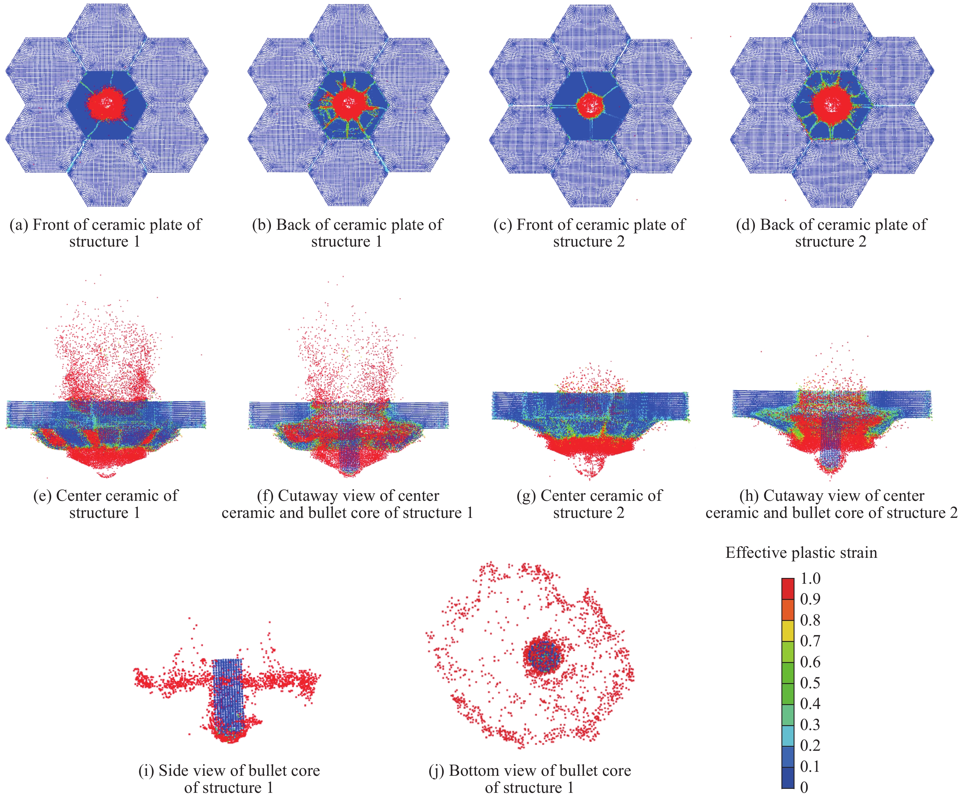 装甲方案 组分(面板到背板) 各组分厚度/mm 1 G/A陶瓷/G/K/G 1.2/X/1.2/10/2 2 G/B陶瓷/G/K/G 1.2/X/1.2/10/2 表 2 陶瓷复合装甲的新型FEM-SPH耦合计算模型的建模方式和材料模型