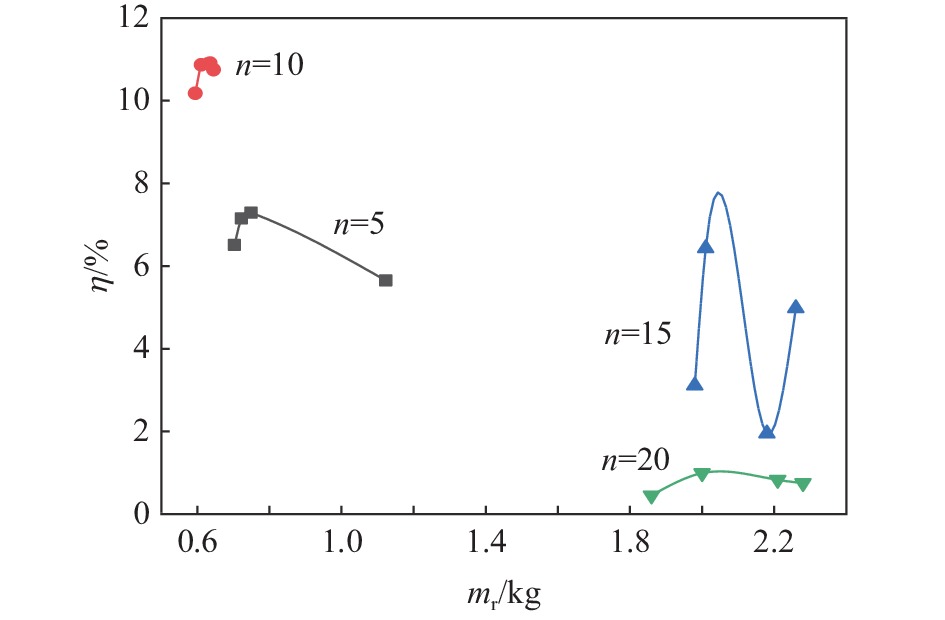 mr/kg mw/kg n Qr/kJ ∆p/MPa w/kg η/% 0.7031 0.140 5 199.36 0.22 0.0031 6.51 0.7224 0.144 204.84 0.24 0.0035 7.15 0.7490 0.150 212.38 0.25 0.0037 7.29 1.1230 0.225 318.43 0.28 0.0043 5.65 0.5944 0.059 10 168.54 0.27 0.0041 10.18 0.6108 0.061 173.19 0.29 0.0045 10.87 0.6355 0.063 180.20 0.30 0.0047 10.91 0.6452 0.065 182.95 0.30 0.0047 10.75 1.98 0.132 15 467.50 0.156 0.00348 3.11 2.01 0.134 473.67 0.272 0.00728 6.43 2.18 0.145 508.63 0.119 0.00237 1.95 2.26 0.151 525.08 0.242 0.00625 4.98 1.86 0.093 20 442.82 0.043 0.00048 0.45 2.00 0.100 471.61 0.072 0.00112 0.99 2.21 0.111 514.80 0.068 0.00102 0.83 2.28 0.114 529.20 0.065 0.00095 0.75 -