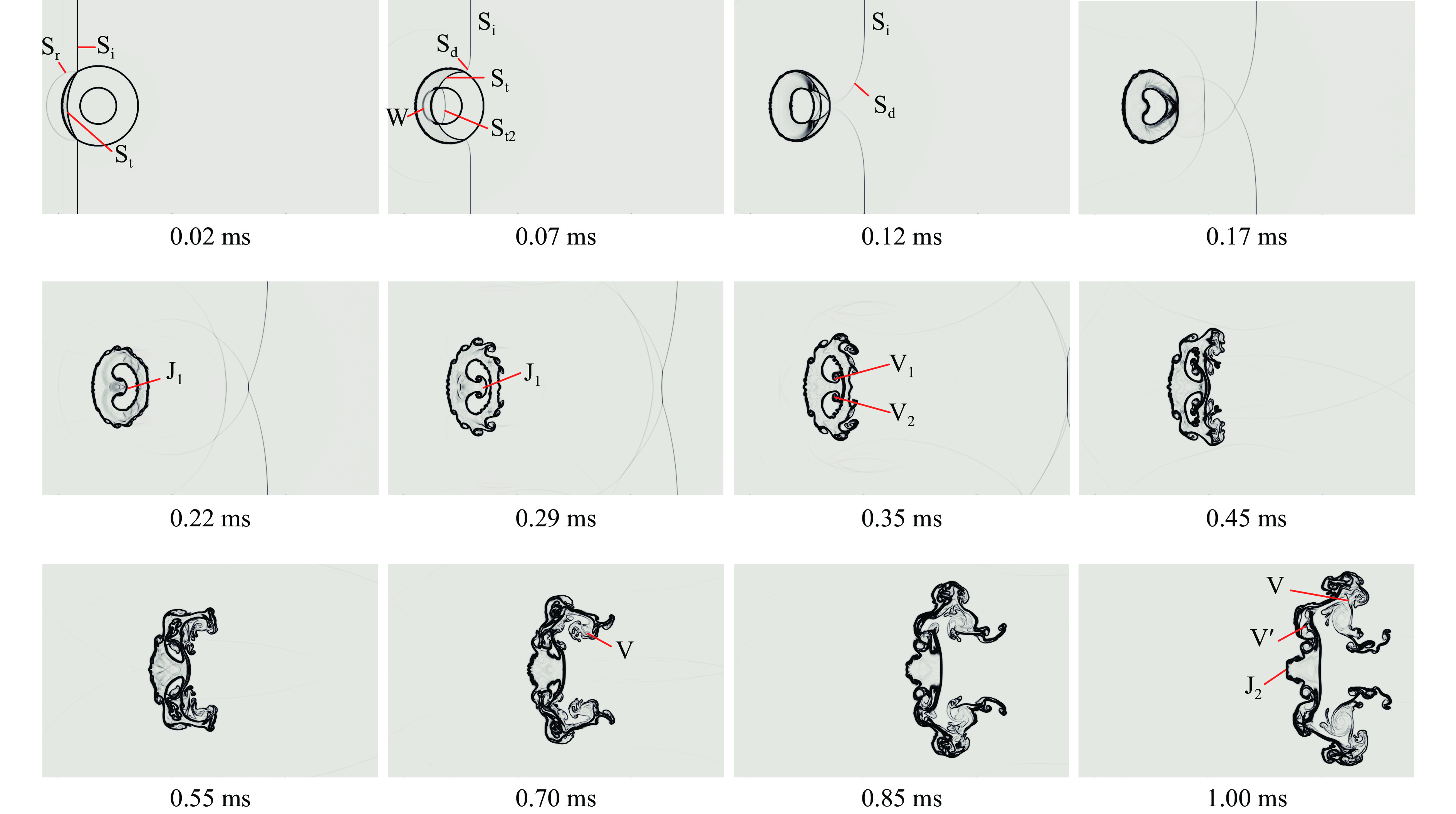 [1] LINDL J D, MCCRORY R L, CAMPBELL E M. Progress toward ignition and burn propagation in inertial confinement fusion [J]. Physics Today, 1992, 45(9): 32–40. DOI: 10.1063/1.881318. [2] YANG J, KUBOTA T, ZUKOSKI E E. Applications of shock-induced mixing to supersonic combustion [J]. AIAA Journal, 1993, 31(5): 854–862. DOI: 10.2514/3.11696. [3] BALAKRISHNAN K, MENON S. Characterization of the mixing layer resulting from the detonation of heterogeneous explosive charges [J]. Flow Turbulence and Combustion, 2011, 87(4): 639–671. DOI: 10.1007/s10494-011-9349-9. [4] 罗喜胜, 翟志刚, 司廷, 等. 激波诱导下的气体界面不稳定性实验研究 [J]. 力学进展, 2014, 44(1): 201407. DOI: 10.6052/1000-0992-14-028.LUO X S, ZHAI Z G, SI T, et al. Experimental study on the interfacial instability induced by shock waves [J]. Advances in Mechanics, 2014, 44(1): 201407. DOI: 10.6052/1000-0992-14-028. [5] ZOU L Y, LIU C L, TAN D W, et al. On interaction of shock wave with elliptic gas cylinder [J]. Journal of Visualization, 2010, 13(4): 347–353. DOI: 10.1007/s12650-010-0053-y. [6] 黄熙龙, 廖深飞, 邹立勇, 等. 激波与椭圆形重气柱相互作用的PLIF实验 [J]. 爆炸与冲击, 2017, 37(5): 829–836. DOI: 10.11883/1001-1455(2017)05-0829-08.HUANG X L, LIAO S F, ZOU L Y, et al. Experiment on interaction of shock and elliptic heavy-gas cylinder by using PLIF [J]. Explosion and Shock Waves, 2017, 37(5): 829–836. DOI: 10.11883/1001-1455(2017)05-0829-08. [7] ZHAI Z G, WANG M H, SI T, et al. On the interaction of a planar shock with a light polygonal interface [J]. Journal of Fluid Mechanics, 2014, 757: 800–816. DOI: 10.1017/jfm.2014.516. [8] LUO X S, WANG M H, SI T, et al. On the interaction of a planar shock with an SF6 polygon [J]. Journal of Fluid Mechanics, 2015, 773: 366–394. DOI: 10.1017/jfm.2015.257. [9] 沙莎, 陈志华, 薛大文, 等. 激波与SF6梯形气柱相互作用的数值模拟 [J]. 物理学报, 2014, 63(8): 085205. DOI: 10.7498/aps.63.085205.SHA S, CHEN Z H, XUE D W, et al. Richtmyer-Meshkov instability induced by the interaction between shock wave and SF6 isosceles trapezoid cylinders [J]. Acta Physica Sinica, 2014, 63(8): 085205. DOI: 10.7498/aps.63.085205. [10] 廖深飞, 邹立勇, 刘金宏, 等. 反射激波作用重气柱的Richtmyer-Meshkov不稳定性的实验研究 [J]. 爆炸与冲击, 2016, 36(1): 87–92. DOI: 10.11883/1001-1455(2016)01-0087-06.LIAO S F, ZOU L Y, LIU J H, et al. Experimental study of Richtmyer-Meshkov instability in a heavy gas cylinder interacting with reflected shock wave [J]. Explosion and Shock Waves, 2016, 36(1): 87–92. DOI: 10.11883/1001-1455(2016)01-0087-06. [11] 王震, 王涛, 柏劲松, 等. 流场非均匀性对非平面激波诱导的Richtmyer-Meshkov不稳定性影响的数值研究 [J]. 爆炸与冲击, 2019, 39(4): 041407. DOI: 10.11883/bzycj-2018-0342.WANG Z, WANG T, BAI J S, et al. Numerical study of non-uniformity effect on Richtmyer-Meshkov instability induced by non-planar shock wave [J]. Explosion and Shock Waves, 2019, 39(4): 041407. DOI: 10.11883/bzycj-2018-0342. [12] ORLICZ G C, BALASUBRAMANIAN S, PRESTRIDGE K P. Incident shock Mach number effects on Richtmyer-Meshkov mixing in a heavy gas layer [J]. Physics of Fluids, 2013, 25(11): 114101. DOI: 10.1063/1.4827435. [13] SHANKAR S K, LELE S K. Numerical investigation of turbulence in reshocked Richtmyer-Meshkov unstable curtain of dense gas [J]. Shock Waves, 2014, 24(1): 79–95. DOI: 10.1007/s00193-013-0478-z. [14] ZENG W G, PAN J H, SUN Y T, et al. Turbulent mixing and energy transfer of reshocked heavy gas curtain [J]. Physics of Fluids, 2018, 30(6): 064106. DOI: 10.1063/1.5032275. [15] DE FRAHAN M T H, MOVAHED P, JOHNSEN E. Numerical simulations of a shock interacting with successive interfaces using the discontinuous Galerkin method: the multilayered Richtmyer-Meshkov and Rayleigh-Taylor instabilities [J]. Shock Waves, 2015, 25(4): 329–345. DOI: 10.1007/s00193-014-0539-y. [16] LIANG Y, LIU L L, ZHAI Z G, et al. Evolution of shock-accelerated heavy gas layer [J]. Journal of Fluid Mechanics, 2020, 886: A7. DOI: 10.1017/jfm.2019.1052. [17] WANG G, WANG Y N, LI D D, et al. Numerical study on shock-accelerated gas rings [J]. Physics of Fluids, 2020, 32(2): 026102. DOI: 10.1063/1.5135762. [18] SAMTANEY R, ZABUSKY N J. Circulation deposition on shock-accelerated planar and curved density-stratified interfaces: models and scaling laws [J]. Journal of Fluid Mechanics, 1994, 269: 45–78. DOI: 10.1017/s0022112094001485. [19] YANG J, KUBOTA T, ZUKOSKI E E. A model for characterization of a vortex pair formed by shock passage over a light-gas inhomogeneity [J]. Journal of Fluid Mechanics, 1994, 258: 217–244. DOI: 10.1017/s0022112094003307. [20] 冯莉莉, 翟志刚, 司廷, 等. 激波诱导双层气柱演化的偏心效应研究 [J]. 气体物理, 2022, 7(2): 13–25. DOI: 10.19527/j.cnki.2096-1642.0959.FENG L L, ZHAI Z G, SI T, et al. Eccentric effect on evolution of shock-accelerated double-layer gas cylinder [J]. Physics of Gases, 2022, 7(2): 13–25. DOI: 10.19527/j.cnki.2096-1642.0959. [21] FENG L L, XU J R, ZHAI Z G, et al. Evolution of shock-accelerated double-layer gas cylinder [J]. Physics of Fluids, 2021, 33(8): 086105. DOI: 10.1063/5.0062459. [22] LOMBARDINI M, HILL D J, PULLIN D I, et al. Atwood ratio dependence of Richtmyer-Meshkov flows under reshock conditions using large-eddy simulations [J]. Journal of Fluid Mechanics, 2011, 670: 439–480. DOI: 10.1017/s0022112010005367. [23] WANG X S, YANG D G, WU J Q, et al. Interaction of a weak shock wave with a discontinuous heavy-gas cylinder [J]. Physics of Fluids, 2015, 27(6): 064104. DOI: 10.1063/1.4922613. [24] NIEDERHAUS J H J, GREENOUGH J A, OAKLEY J G, et al. A computational parameter study for the three-dimensional shock-bubble interaction [J]. Journal of Fluid Mechanics, 2008, 594: 85–124. DOI: 10.1017/s0022112007008749. [25] ZHENG C, ZHANG H H, CHEN Z H, et al. Interaction of 