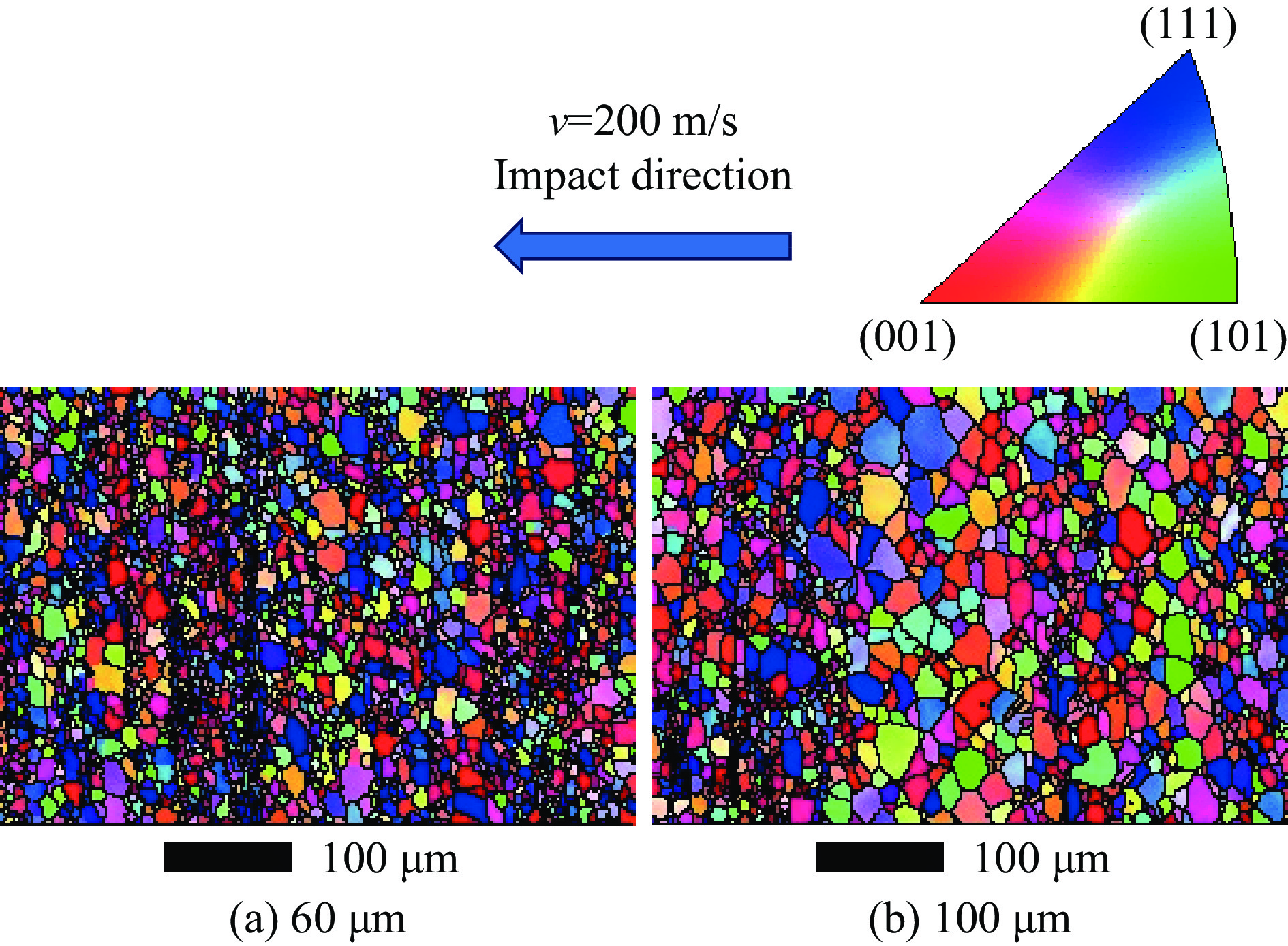 Figure  12.  EBSD characterization of HP aluminum sampleswith different grain sizes under shock compression