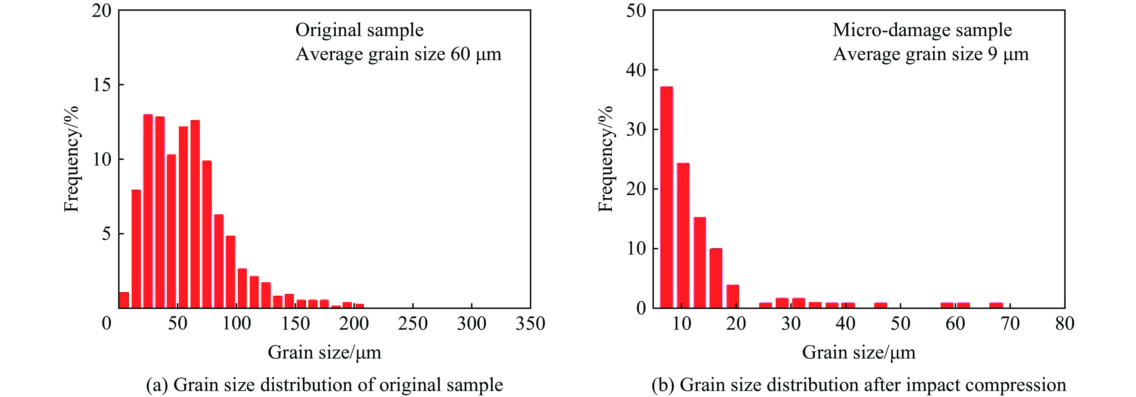 图  13  高纯铝靶板原始的和冲击压缩后的晶粒尺寸分布