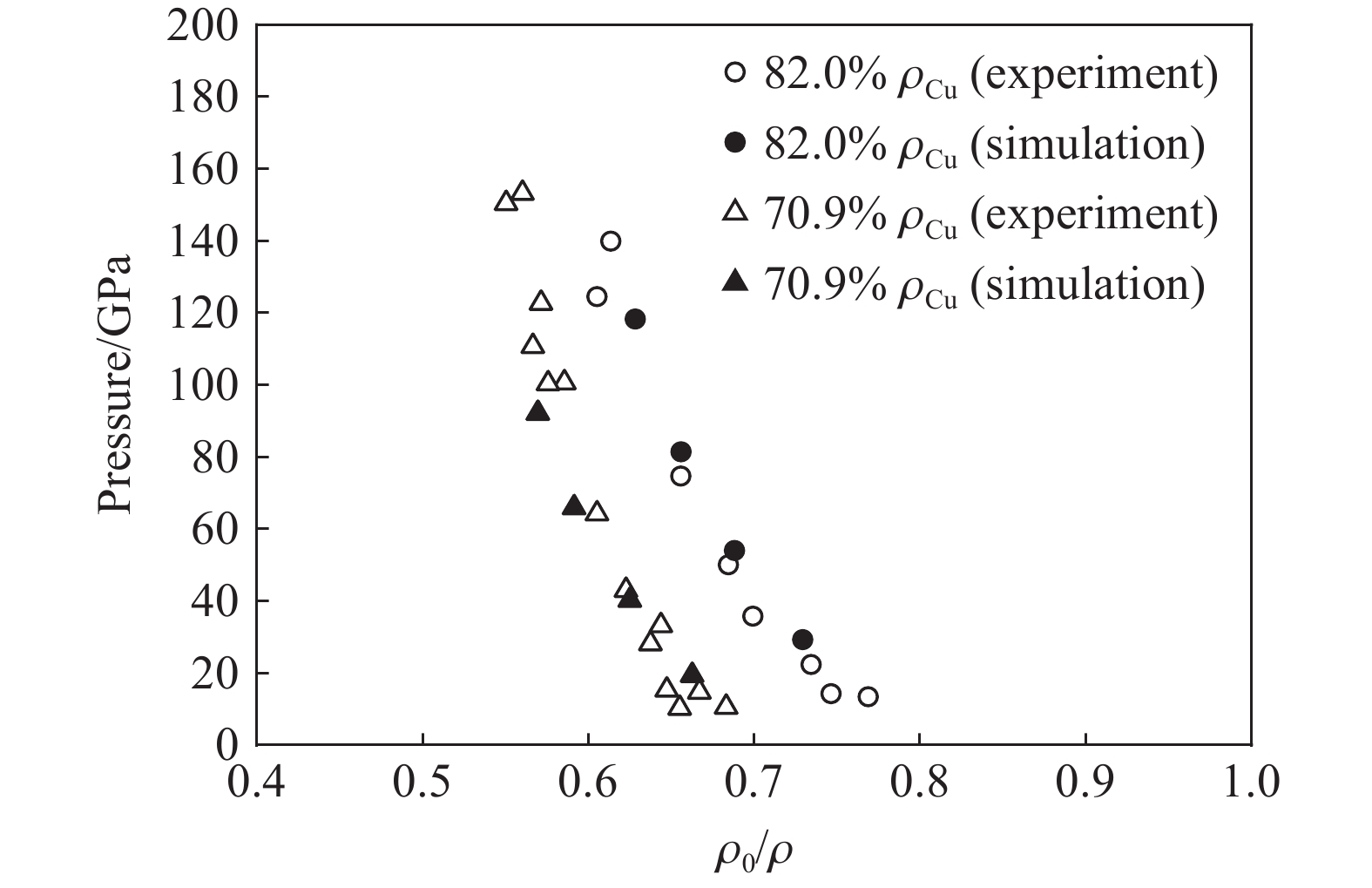 $ {\alpha }_{0}=1.3, $ $ {v}_{0}=0.3\;\mathrm{k}\mathrm{m}/\mathrm{s} $ ,$ {n}_{\rm{b}}=10 , \;{n}_{\rm{spall}}=10 $ ρ0/(g·cm−3) c0/(km·s−1) S1 S2 S3 γ0 a 8.93 3.94 1.489 0 0 2.02 0.47 $ {Y}_{0}/\mathrm{G}\mathrm{P}\mathrm{a} $ $ {Y}_{\mathrm{m}\mathrm{a}\mathrm{x}}/\mathrm{G}\mathrm{P}\mathrm{a} $ $ \beta $ $ n $ $ b $ $ h $ $ {T}_{\mathrm{m}0}/\mathrm{K} $ $ {\varepsilon }_{00} $ $ {\varepsilon }_{01} $ $ {\varepsilon }_{02} $ $ {\varepsilon }_{03} $ $ {\varepsilon }_{04} $ 0.12 0.6 36 0.45 3 3.8×10−4 1790 −0.1178 −0.2344 7.529 15.26 21.9 -