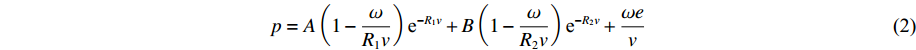 p=A(1−ωR1v)e−R1v+B(1−ωR2v)e−R2v+ωev (2) 式中:A、B、R1 、R2和