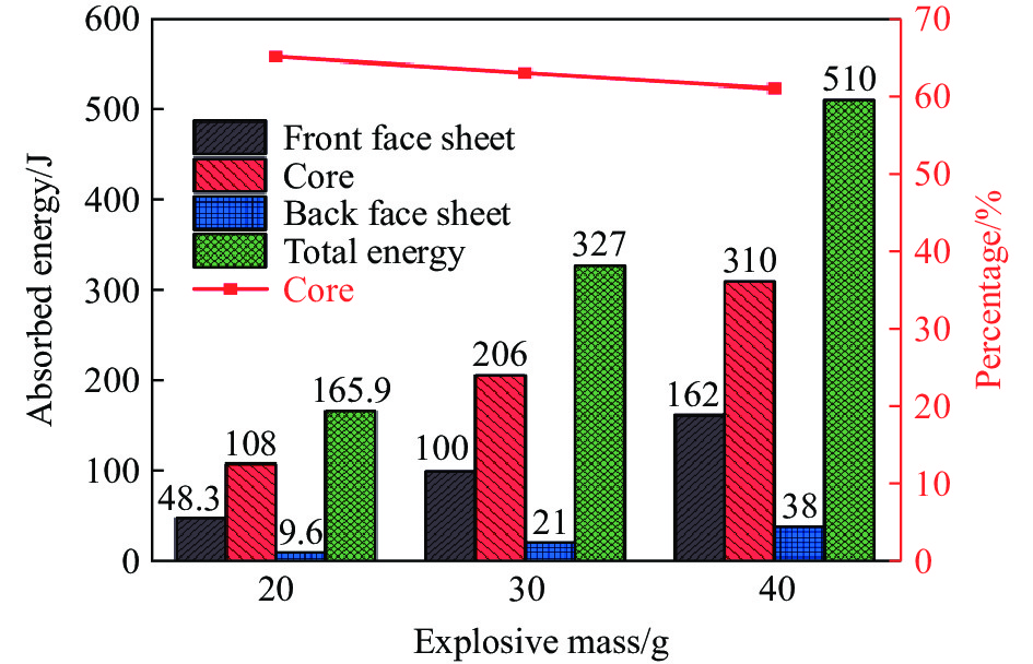 编号 Tf/mm Tb/mm A/mm L2/mm 爆炸距离/mm Q/g 拉伸宽度L4/mm A-1 1.2 1.2 1 10 100 20 5 Q-30 1.2 1.2 1 10 100 30 5 Q-40 1.2 1.2 1 10 100 40 5 S-80 1.2 1.2 1 10 80 20 5 S-120 1.2 1.2 1 10 120 20 5 表 3 4组夹芯板的几何参数和爆炸参数[37]