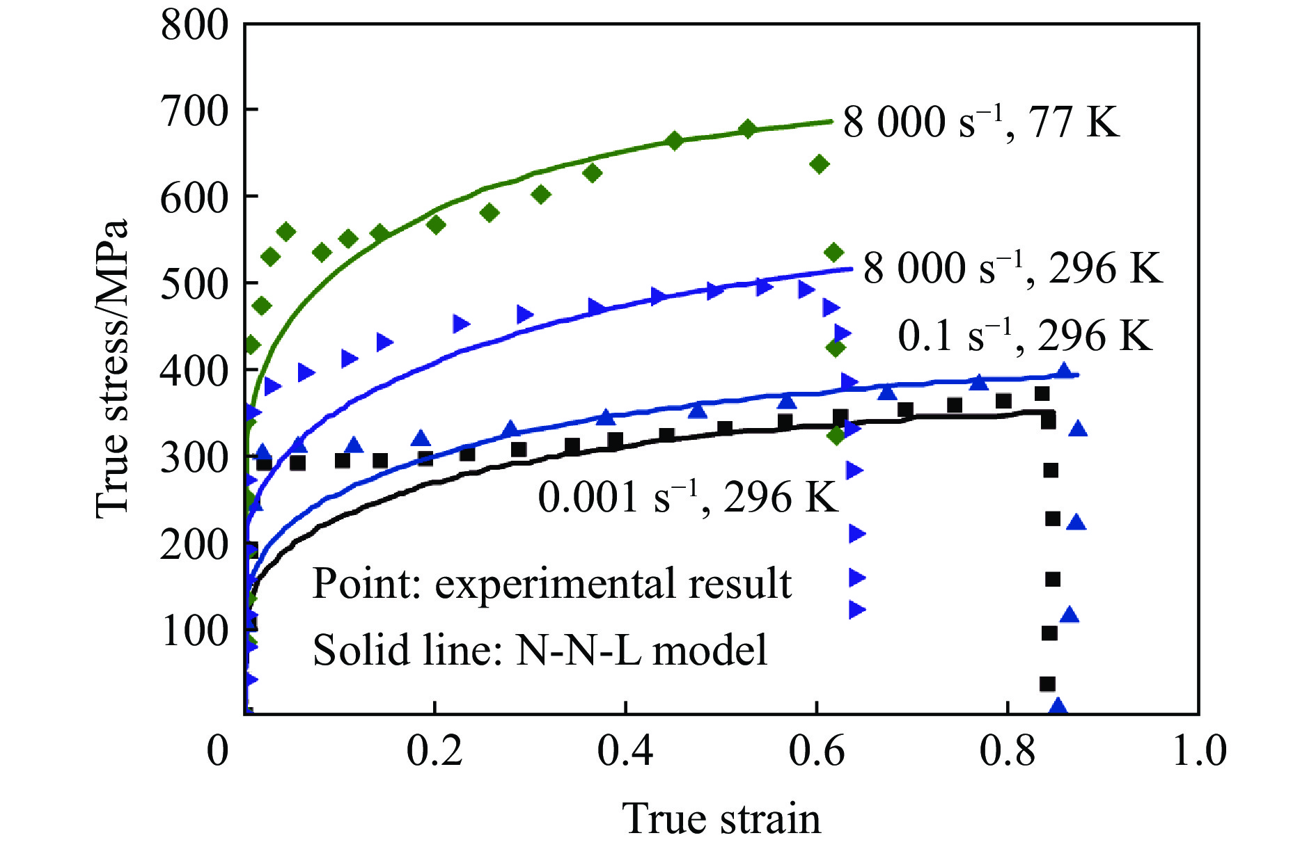 (2)考虑了阈值应力N-N-L 1998 Nemat-Nasser-Li[57] 10−3~104 考虑了位错密度随应变和温度的变化 其他 2001 Rusinek-Klepaczko[61,62] 10−4~103 考虑了应变率历史效应对金属材料塑性流动行为的影响 2009 Rusinek-Rodrguez-Martnez[63] 10−4~104 (1)添加一个第三项来扩展该本构关系的应用范围