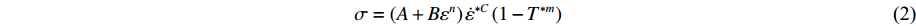 (2)应变率项为幂函数形式2000 Khan-Zhang[37] 10−4~103 (1)考虑了晶粒尺寸对金属流动应力的影响