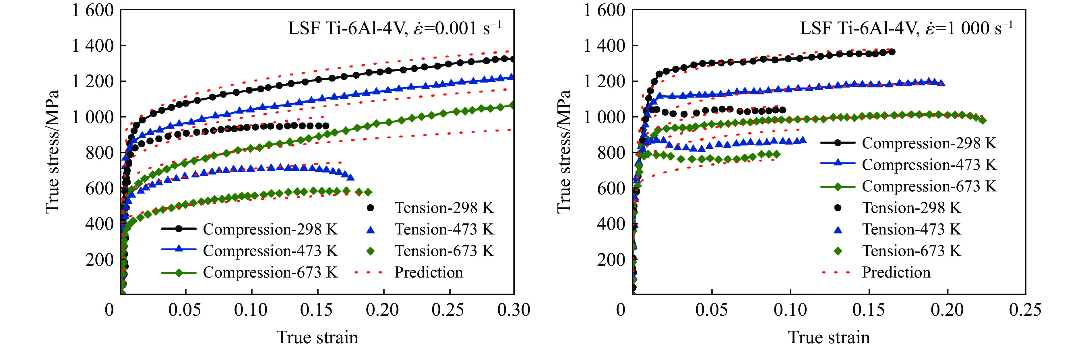模型 方程形式 Johnson-Cook[20] $\sigma = \left( {A + B{\varepsilon ^n}} \right)\left( {1 + C\ln {{\dot \varepsilon }^ * }} \right)\left( {1 - {T^{ * m}}} \right)$ Holmquist[24] $\sigma = \left( {A + B{\varepsilon ^n}} \right)\left( {{{\dot \varepsilon }^{ * C}}} \right)\left( {1 - {T^{ * m}}} \right)$ Rule-Jones[25] $\sigma = \left( {A + B{\varepsilon ^n}} \right)\left[ {1 + C\ln {{\dot \varepsilon }^ * } + {C_4}\left( {\dfrac{1}{{{C_5} - \ln {{\dot \varepsilon }^ * }}} - \dfrac{1}{{{C_5}}}} \right)} \right]\left( {1 - {T^{ * m}}} \right)$ Kang-Cho[26] $\sigma = \left( {A + B{\varepsilon ^n}} \right)\left[ {1 + {C_1}\ln {{\dot \varepsilon }^ * } + {C_2}{{\left( {\ln {{\dot \varepsilon }^ * }} \right)}^2}} \right]\left( {1 - {T^{ * m}}} \right)$ Vural-Cairo[27] $\sigma = \left\{ {A + {B_0}\left[ {1 - {{\left( {\dfrac{{T - {T_0}}}{{{T_{\text{m}}} - {T_0}}}} \right)}^p}} \right]{\varepsilon ^n}} \right\}\left[ {1 + \left( {{c_1}T_{\text{r}}^{ * p} + {c_2}H} \right)\ln \left( {\dfrac{{\dot \varepsilon }}{{{{\dot \varepsilon }_0}}}} \right)} \right]\left[ {1 - {{\left( {\dfrac{{T - {T_0}}}{{{T_{\text{r}}} - {T_0}}}} \right)}^p}} \right]$ Lin-Xia[28] $\sigma = \left( {A + {B_1}\varepsilon + {B_2}{\varepsilon ^2}} \right)\left( {1 + C\ln {{\dot \varepsilon }^ * }} \right)\exp \left[ {\left( {{\lambda _1} + {\lambda _2}\ln {{\dot \varepsilon }^ * }} \right)\left( {T - {T_{\text{r}}}} \right)} \right]$ Khan-Huang[16] ${J_2} = {f_1}\left( \varepsilon \right){f_2}\left( {D_2^{\text{p}}} \right)$ Yu-Guo[35] $\sigma = f\left( {\varepsilon ,\dot \varepsilon } \right) = {\sigma _0}{\hat f_2}\left( {\dot \varepsilon } \right) + {E_\infty }\varepsilon - a{{\text{e}}^{ - \alpha \varepsilon }}$ Khan-Liang[36] $\sigma = \left[ {A + B{ {\left( {1 - \dfrac{ {\ln {\dot \varepsilon } } }{ {\ln {D_0^{\text{p} } } } } } \right)}^{ {n_1} } }{\varepsilon ^{ {n_0} } } } \right]\left( {1 - {T^{*m} } } \right){\dot \varepsilon ^C}$ Khan-Zhang[37] $\sigma = \left[ { \left({a{}_1 + \dfrac{ { {k_1} } }{ {\sqrt d } } }\right) + B{ {\left( {1 - \dfrac{ {\ln {\dot \varepsilon } } }{ {\ln {D_0^{\text{p} } } } } } \right)}^{ {n_1} } }{\varepsilon ^{ {n_0} } } } \right]\left( {1 - {T^{ * m} } } \right){\dot \varepsilon ^C}$ Farrokh-Khan[38] $\sigma {\text{ = } }\left\{ {\left( { {a_1} + \dfrac{ { {k_1} } }{ {\sqrt d } } } \right) + B{ {\left( {\dfrac{d}{ { {d_0} } } } \right)}^{ {n_2} } }{ {\left[ {\left( {1 - \dfrac{ {\ln {\dot \varepsilon } } }{ {\ln {D_0^{\text{p} } } } } } \right) {\dfrac{ { {T_{\text{m} } } } }{T} } } \right]}^{ {n_1} } }{ {\left( \varepsilon \right)}^{ {n_0} } } } \right\}{\left( {\dfrac{ { {T_{\text{m} } } - T} }{ { {T_{\text{m} } } - {T_{\text{r} } } } } } \right)^m}{\left( {\dfrac{ {\dot \varepsilon } }{ { { {\dot \varepsilon }^ * } } } } \right)^C}$ Voce-Kocks[39-40] $\sigma = {\sigma _{\text{s}}} + \left[ {\left( {{\sigma _0} - {\sigma _{\text{s}}}} \right)\exp \left( { - \dfrac{\varepsilon }{{{\varepsilon _{\text{r}}}}}} \right)} \right]$ Molinari-Ravichandran[41] $\dfrac{ { {\delta _{\text{r} } } } }{ { {\delta _{ {\text{r0} } } } } } = {\left[ {1 - { {\left( { {k_{\text{r} } } {\dfrac{T}{ { {T_{ {\text{r0} } } } } } } \lg {\dfrac{ { { {\dot \varepsilon }_{ {\text{r0} } } } } }{ {\dot \varepsilon } } } } \right)}^{ {p_{\text{r} } } } } } \right]^{ {q_{\text{r} } } } }\text{,}\dfrac{ { {\delta _{\text{s} } } } }{ { {\delta _{ {\text{s0} } } } } } = \dfrac{1}{ { { {\left[ {1 - { {\left( { {k_{\text{s} } } {\dfrac{T}{ { {T_{ {\text{s0} } } } } } } \lg {\dfrac{ { { {\dot \varepsilon }_{ {\text{r0} } } } } }{ {\dot \varepsilon } } } } \right)}^{ {p_{\text{s} } } } } } \right] }^{ {q_{\text{s} } } } } } }$ 表 3 物理概念本构关系的模型对比