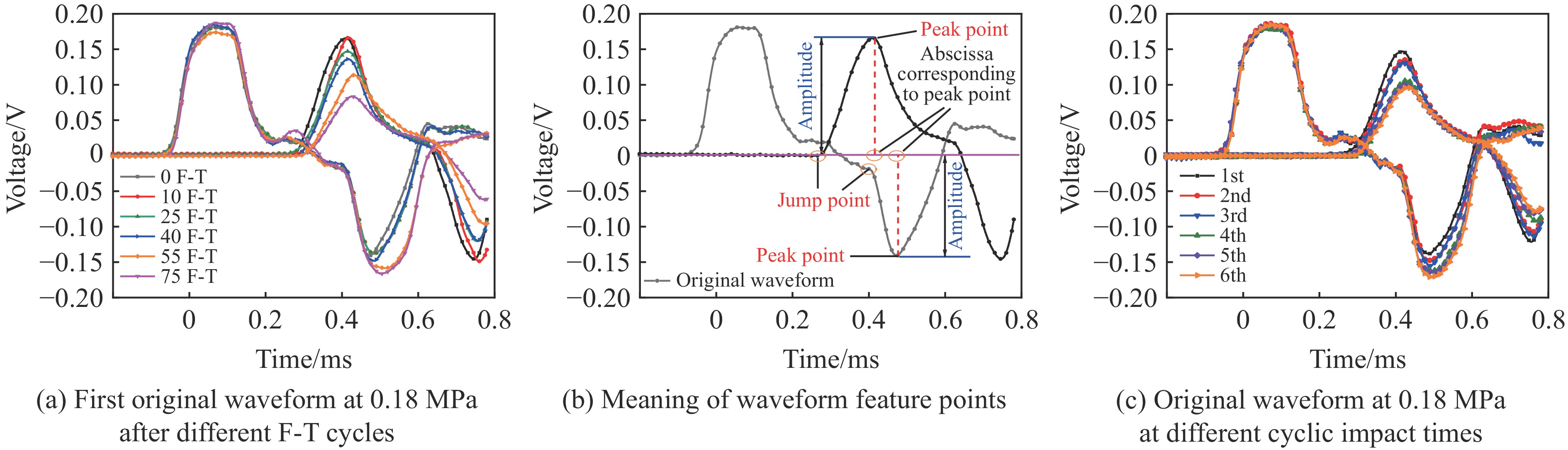 Table 3. Dynamic peak stresses, peak strains, and deformation moduli of red sandstone specimens at the impact gas pressure of 0.18 MPa